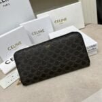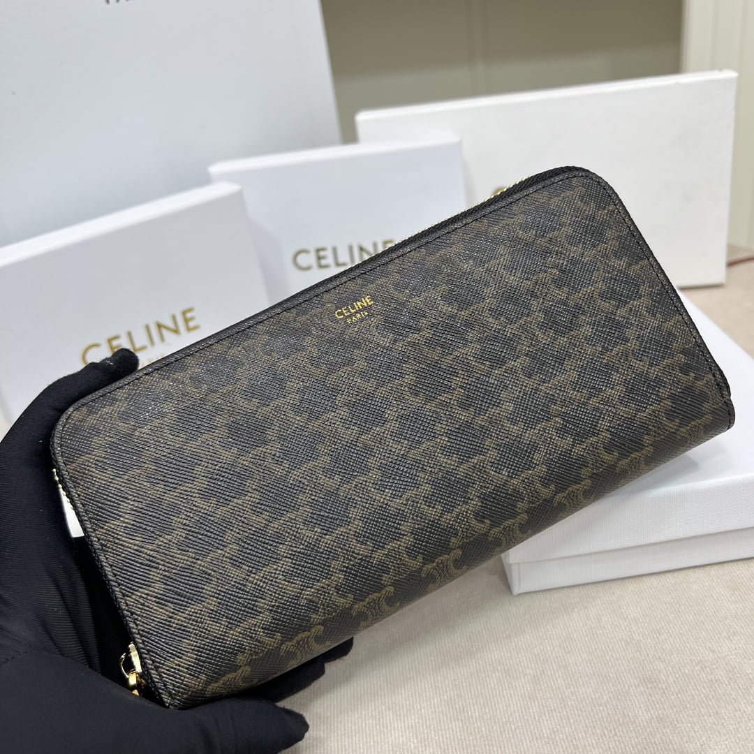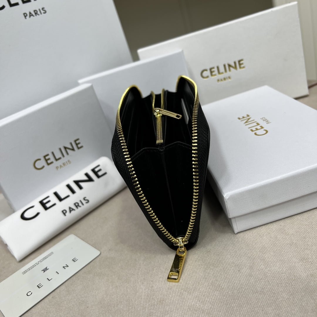 CELINE🇫🇷TRIOMPHE canvas large CCHARM zipper silver Bag Noir calfskin lined gold metal trim zipper switch with two folding inner compartments with eight credit card insert pockets with one zipper pocket with two flat pockets 📷 Dimensions: 7 X 4 inches (19 X 10 cm) Number: 10552