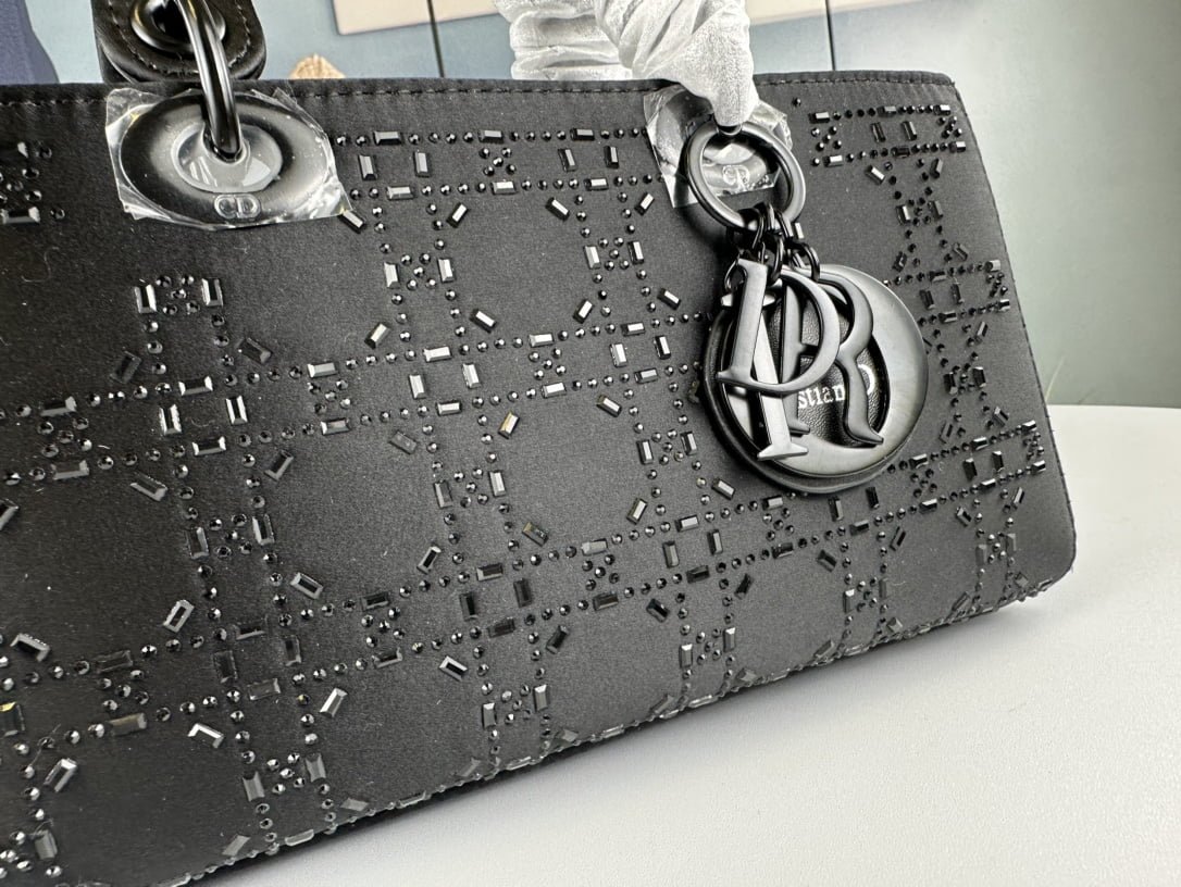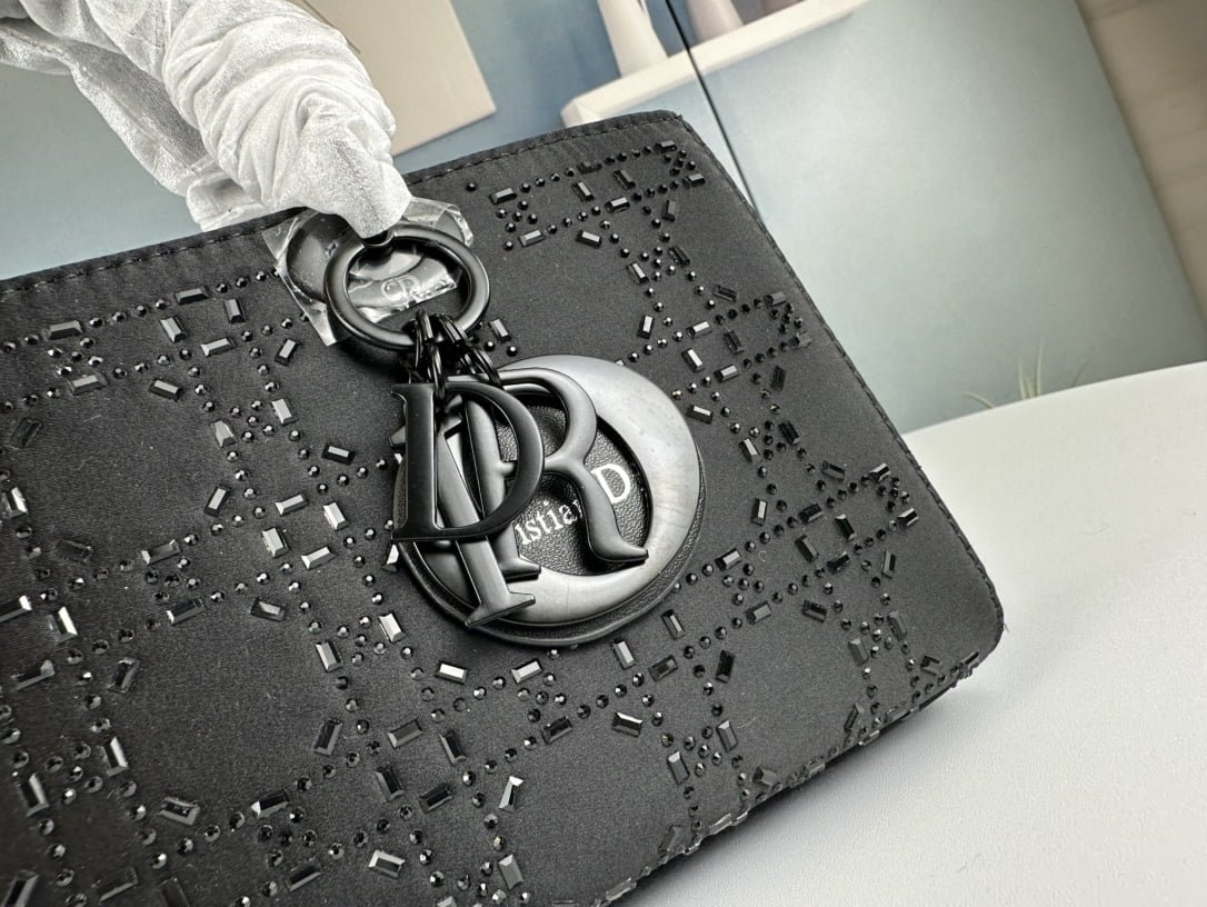 Horizontal hot diamond Dior@Satin diamonded Diana bag 💗 silk flashes different colors under different angles of light 😘, the three-dimensional sense of the transition of light and dark makes the satin a higher grade 💫 ubiquitous exposure rate, Internet celebrity hand a 🎀 size 26x13x6, model No. 2320