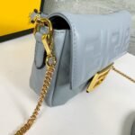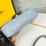 Clamshell magnetic snaps. Equipped with FF magnetic buckle. Lined with zipper bag. With removable shoulder strap, handbag can be shoulder or crossbody. (Sheepskin). Decorated with FF embossed pattern. Gold metal part number F0193