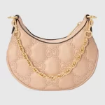 • The Pre-Fall 2023 collection captures the essence of Gucci. Colors, prints, and emblems appear consistently across time-honored silhouettes, demonstrating the House’s ability to reinvent signature pieces season after season. This compact mini bag is presented in beige GG Matelassé leather and further enriched with a Double G emblem.
